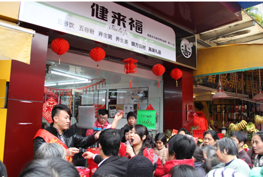 来几张健来福推出市面的反应,目前健来福的连锁养生超市已开到了数百家。