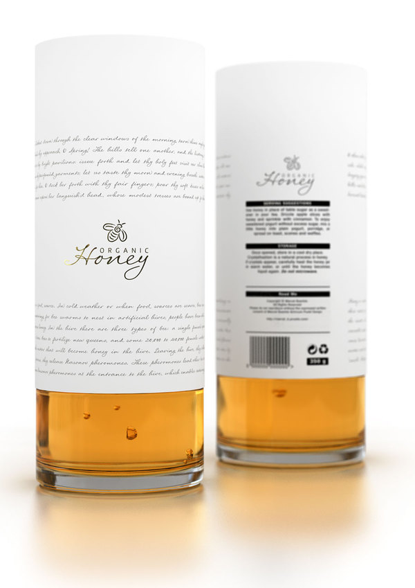 下面狗子28 欣赏一款蜂蜜包装整合设计: