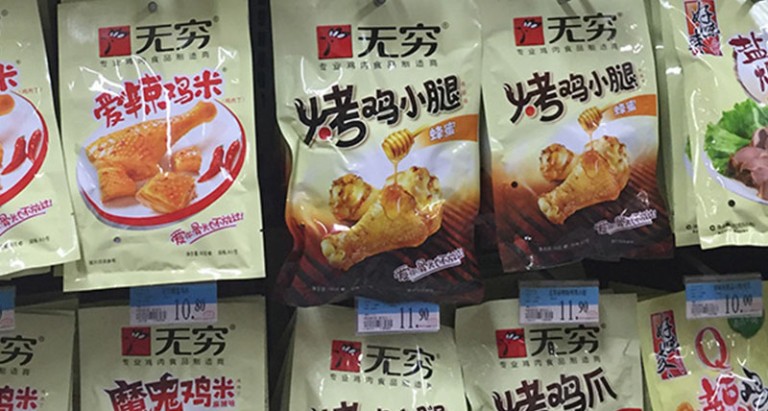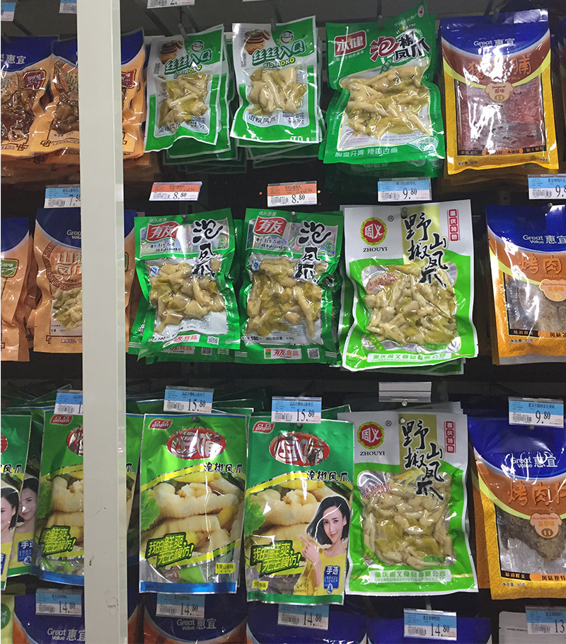 下面的泡椒凤爪,大家的印象其包装设计就是绿色的,所以很多后来的擦边产品就都用了绿色,有没想过,是否泡椒就只有绿色的了呢?是否还有比这个更合适的颜色运用呢?这里面我想设计师并非不是想不到,而是这个过程企业的定位已经是遏制了设计师的发挥了。所以最后的结果是给竞争对手做了嫁衣,自己也吃力不讨好。