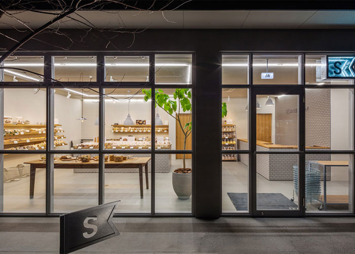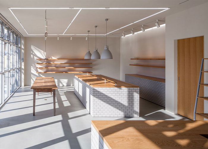 除此之外还有另一项设计重点,即是店内大量采用自然光,店门口大片的方格玻璃窗,让满满的自然阳光透入内边空间,从座位区到放置在木桌上整齐划一的各色面包,与光线交织出令人暖心又食指大动的美丽画面,让闲晃著挑选面包的人们,也能度过一段轻松慵懒的休闲好“食”光。